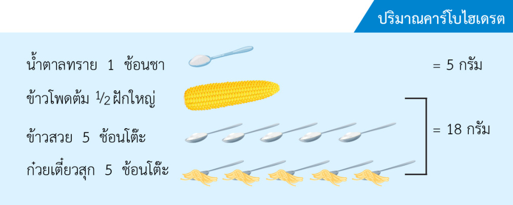 กลุ่มที่ 2 คาร์โบไฮเดรต : ข้าว เผือก มัน และน้ำตาล