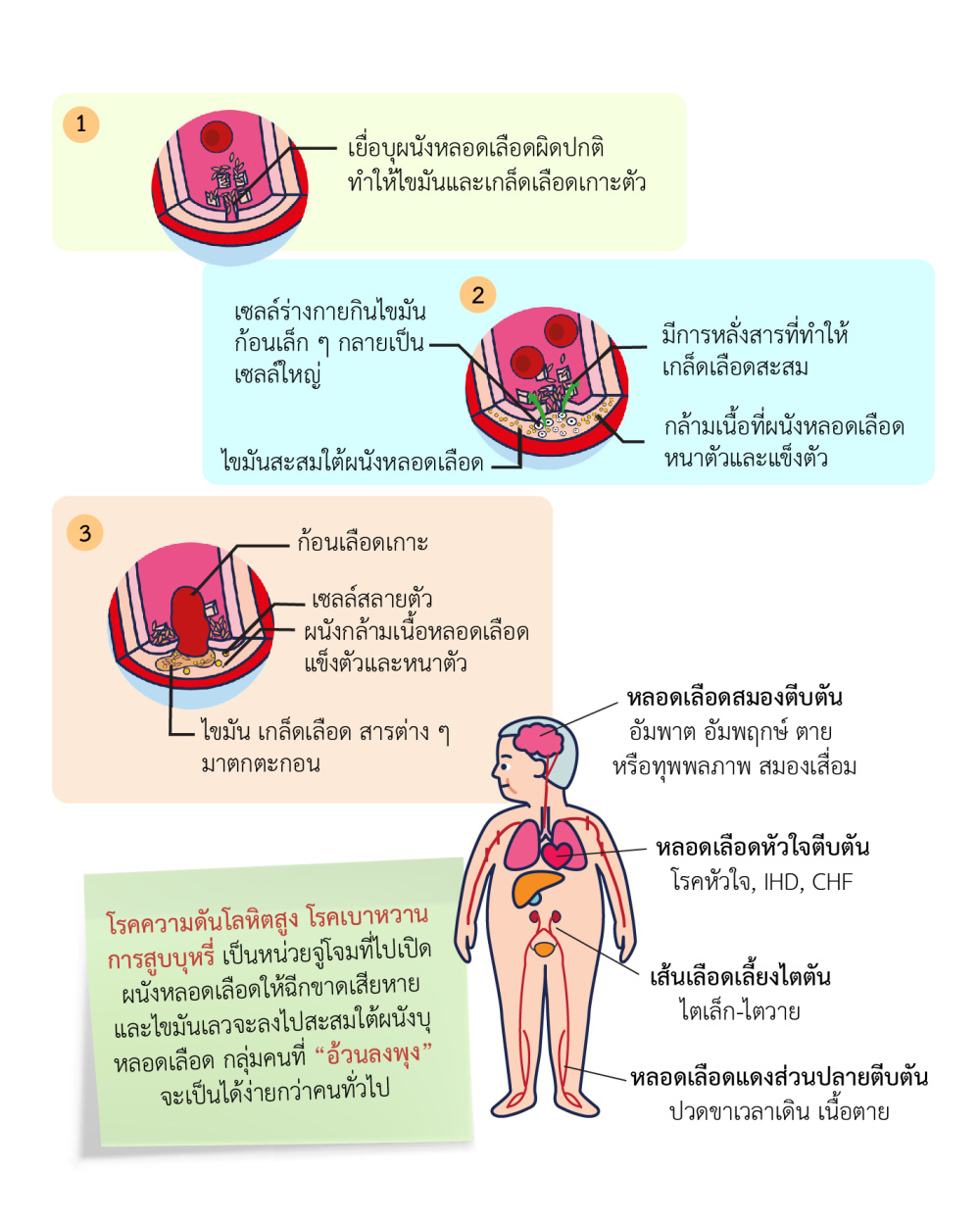 ไขมันอุดตันในหลอดเลือดขนาดกลางและใหญ่ มีพัฒนาการเป็นขั้นตอน ดังนี้