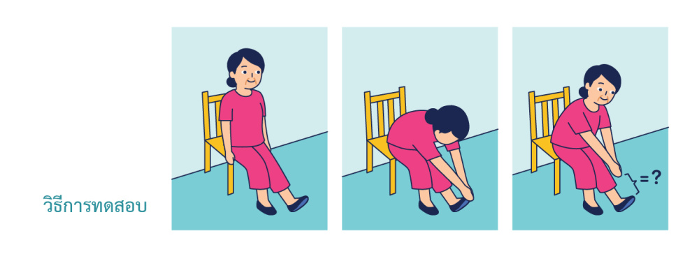 เกณฑ์การทดสอบ : ถ้าทำได้น้อยกว่า 8 ครั้ง ถือว่ากล้ามเนื้อขาไม่แข็งแรง