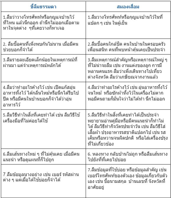 ความแตกต่างระหว่างการขี้ลืมธรรมดากับภาวะสมองเสื่อมในเรื่องเดียวกันเป็นอย่างไร ตัวอย่างเหล่านี้จะช่วยให้เข้าใจง่ายขึ้น