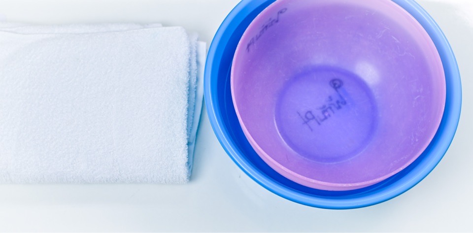 1. กะละมัง 2 ใบ- ใบที่ 1 ใส่น้ำสะอาดสำหรับทำความสะอาดหน้า ลำตัวด้านบน และ แช่มือ